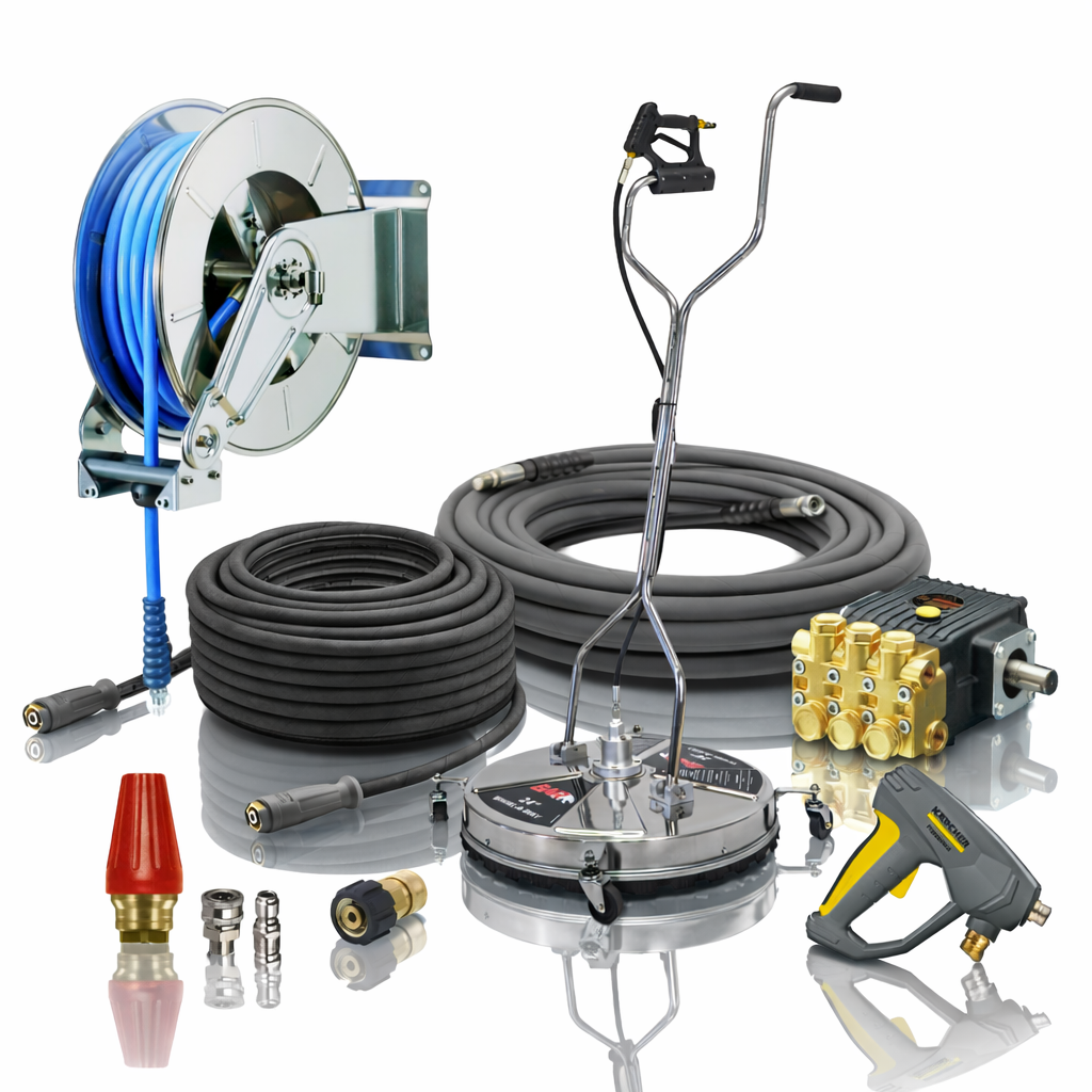 It doesn’t stop at equipment and servicing. We stock and install a comprehensive range of professional pressure cleaner accessories and spare parts - from hoses, reels, booms, trigger guns, nozzles, whirl-a-ways, fittings, replacement pumps and components.